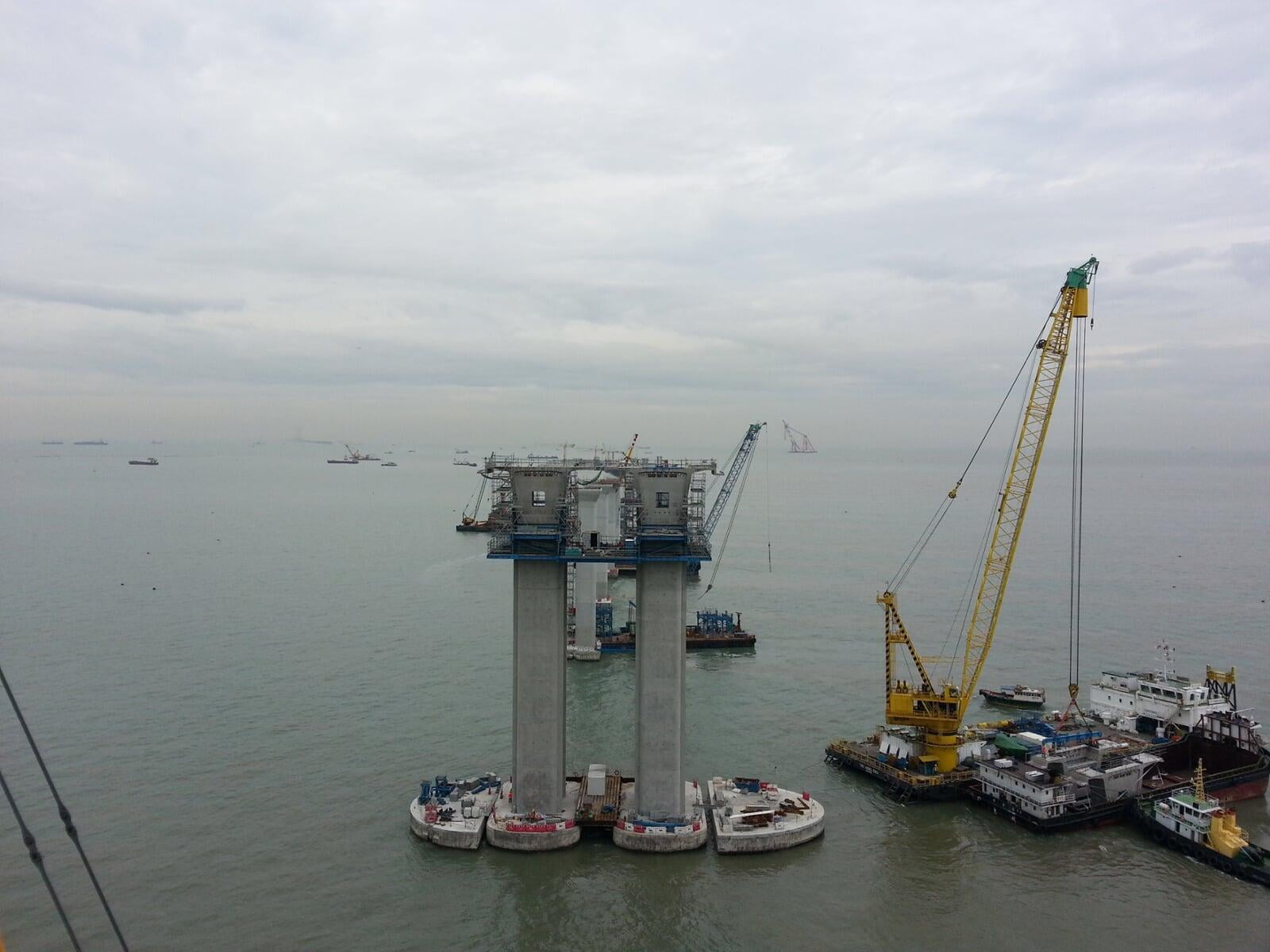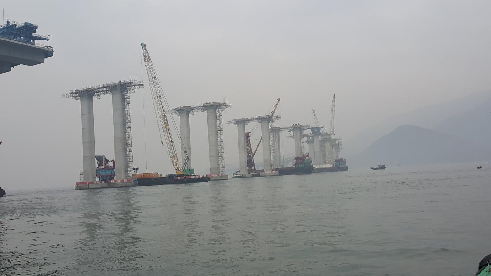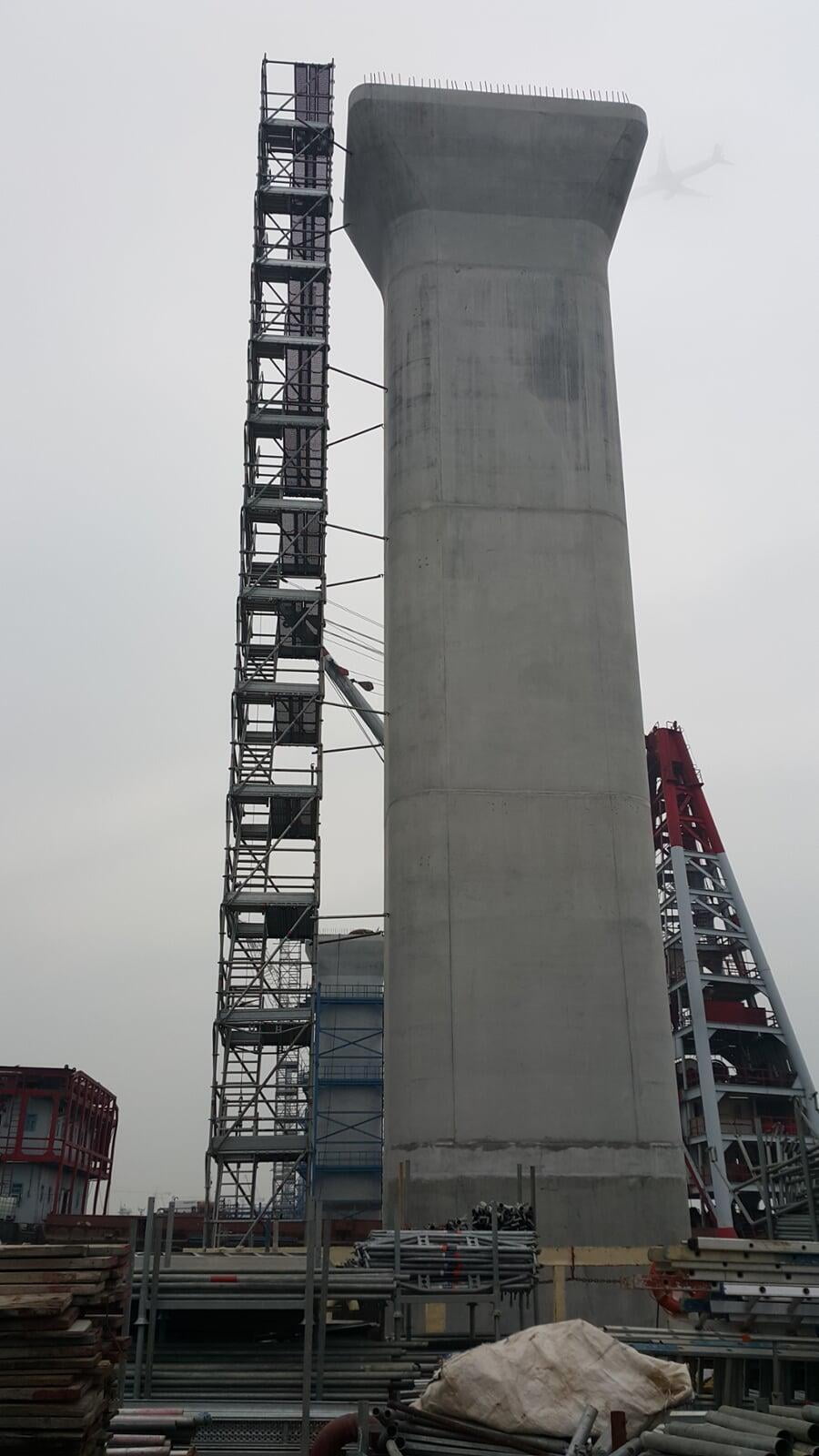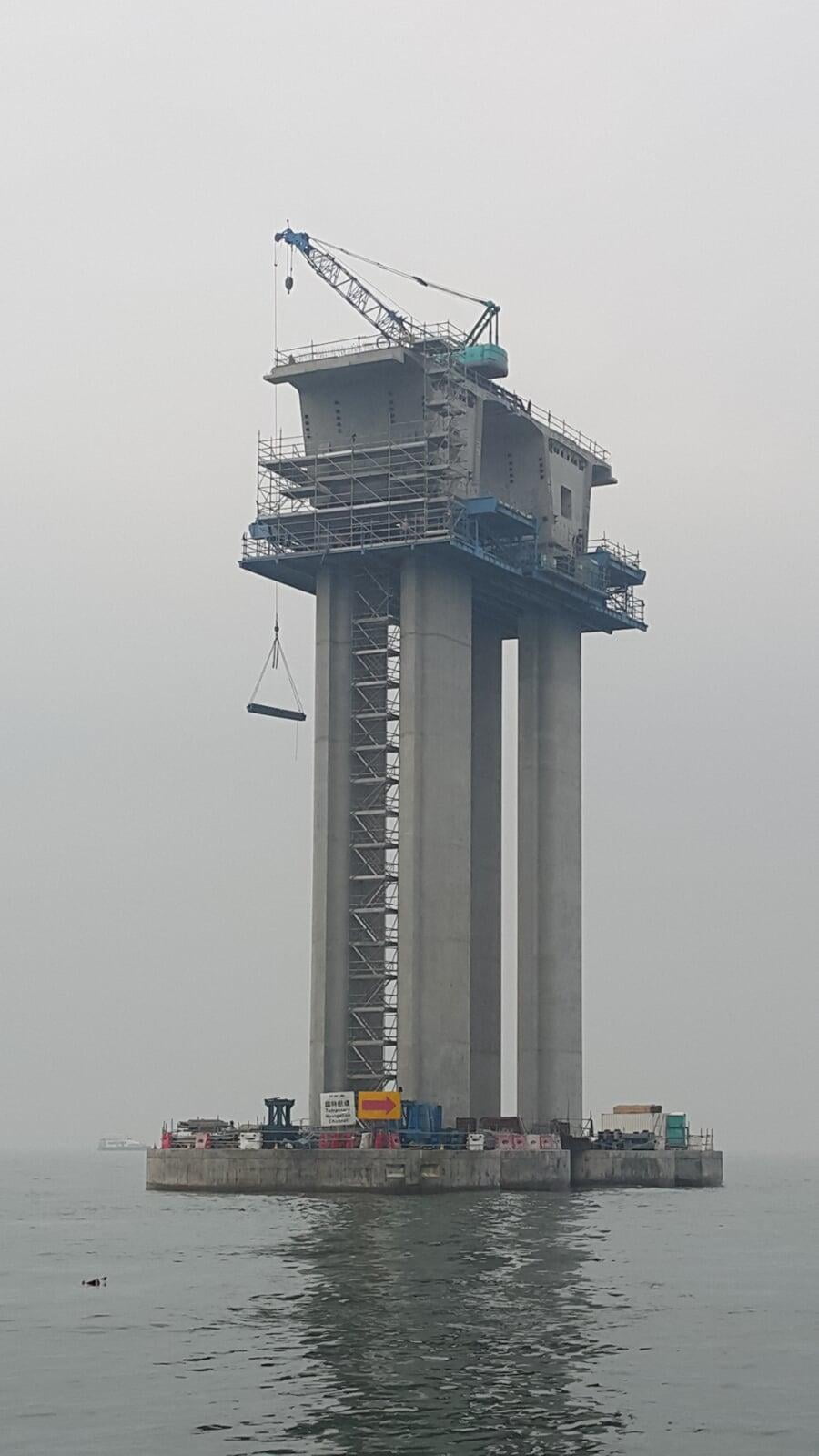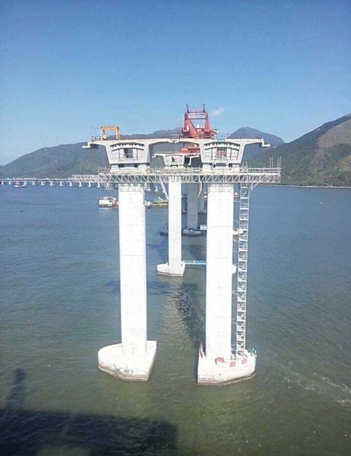 The main contract was for the over sea bridge connecting Hong Kong to Macau and Zhuhai. We were the primary scaffolding contractor for this project. We carried out two packages for this job. One was to design, supply and build access towers around the piers providing access to government officials in carrying out rebound hammer and coring test to assess the density of the concrete piers. Another was to supply grade A especially trained scaffolders for erection of pier head suspended access reaching up to 45 meters above pile cap.