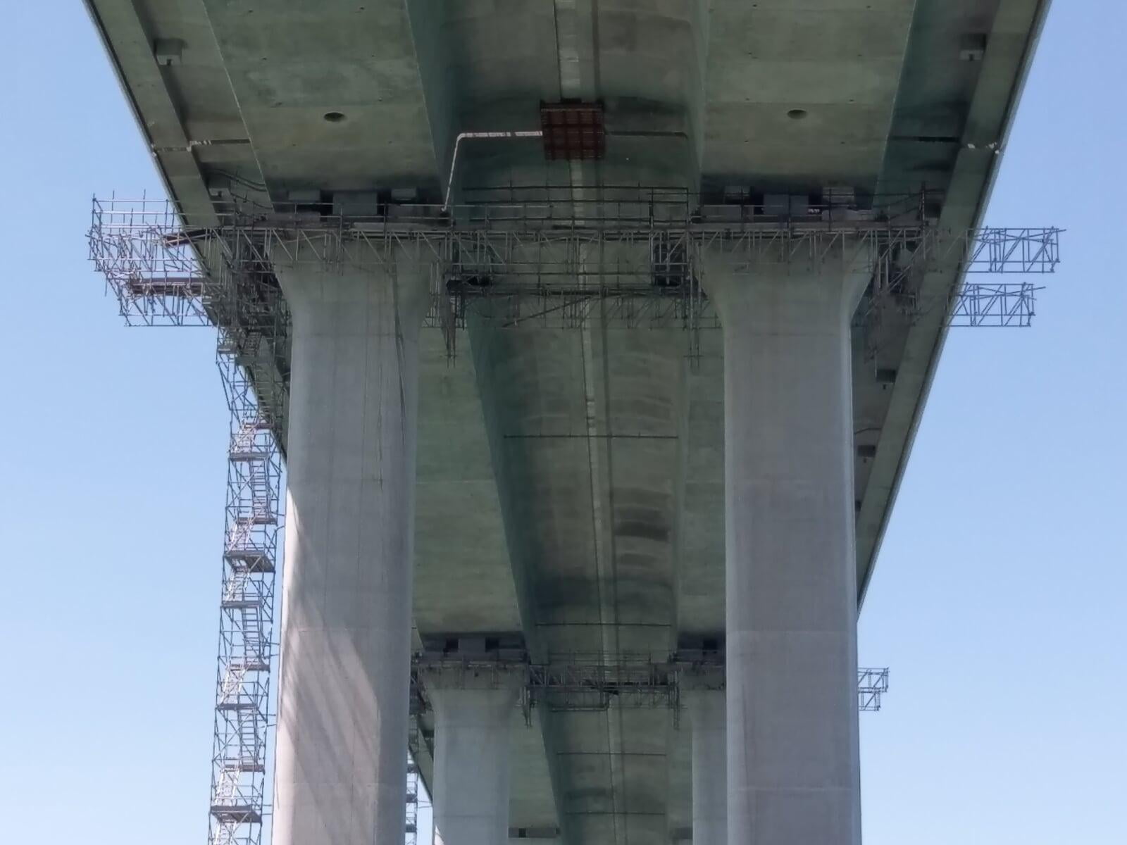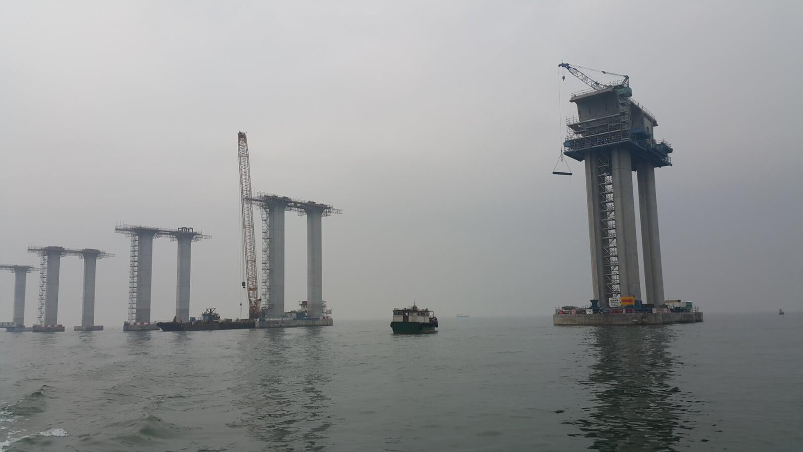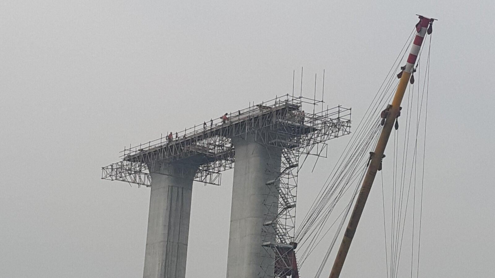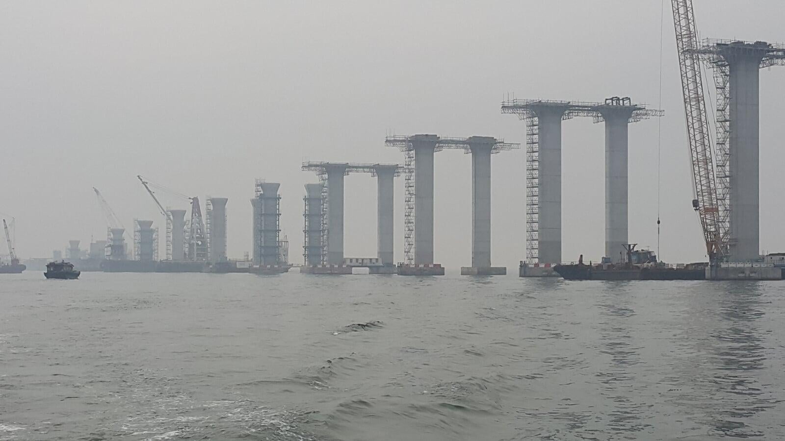 The main contract was for the over sea bridge connecting Hong Kong to Macau and Zhuhai. We were the primary scaffolding contractor for this project. We carried out two packages for this job. One was to design, supply and build access towers around the piers providing access to government officials in carrying out rebound hammer and coring test to assess the density of the concrete piers. Another was to supply grade A especially trained scaffolders for erection of pier head suspended access reaching up to 45 meters above pile cap.