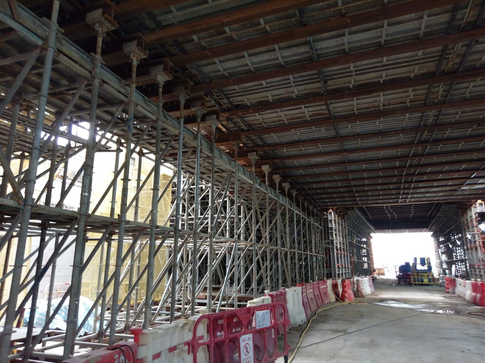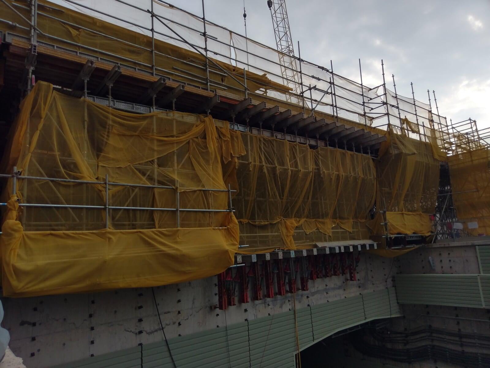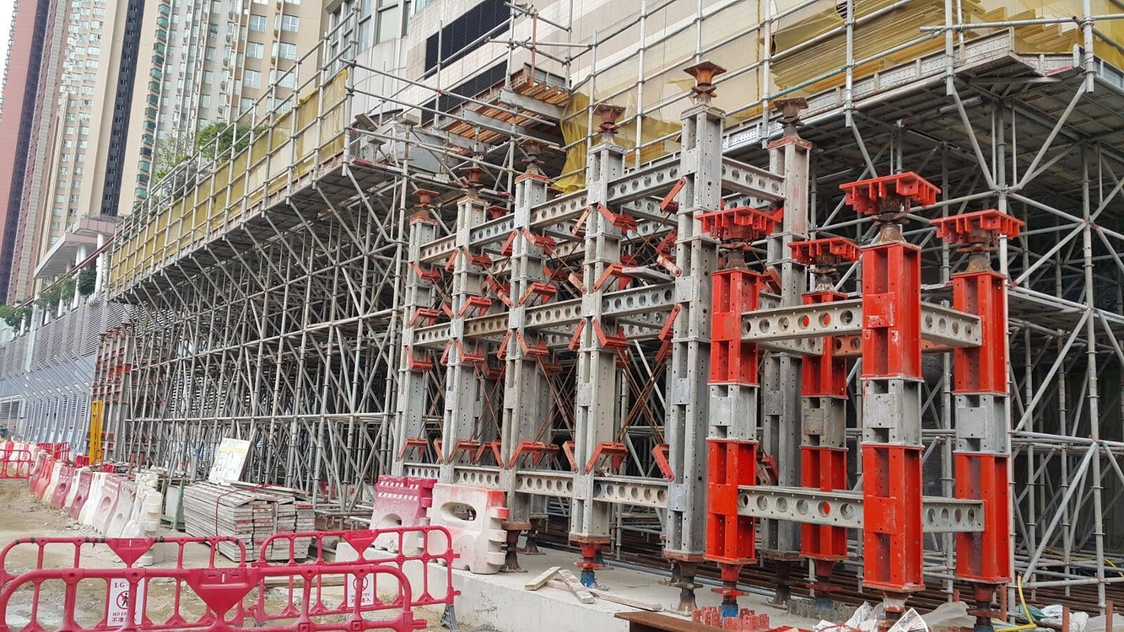 We were one of the three main scaffolding companies for Express Railway project. The project is on a lump sum basis with daywork for all variations. Our total contract value for this project was around HK$64 million. We have done virtually all forms of scaffolding for this job. We used ring lock system to provide access platform for steel-fixers, carpenters and concreters. We erected ad-hoc access towers, walkways, portals etc. using tube and fitting. We used ring lock and RMD system to erect falsework to offer shoring support for bridge and road constructions.